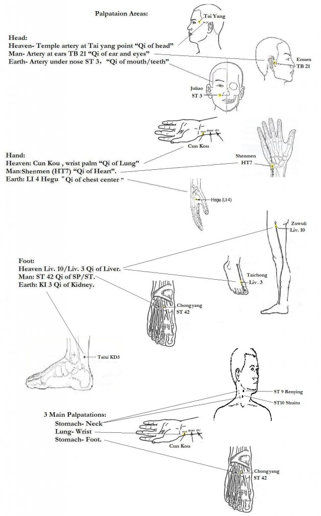 Taiyang Small Intestines (SI): 1)suprascapular fossa- heart-esophagus-diaphragm-stomach-small intes.2)neck-cheek-ear 3)lateral side of nose to inner canthus.