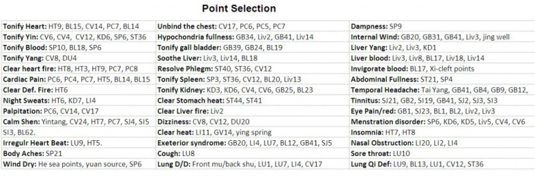 Actions, Locations, and Indications of the acupoints: Data for exams