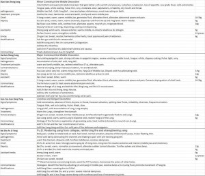 Signs/symptoms: Excruciating epigastric pain, strong cold area in epigastric region, severe vomiting, unable to eat, tongue: white, slippery coating, Pulse: tight, wiry.