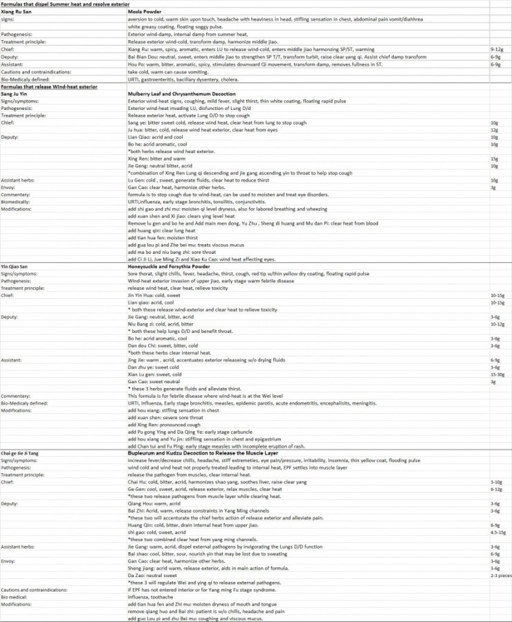 Formulas that Release Exterior: Wind-Cold, Wind-Heat