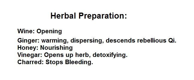 Assistant herb: Da zao: warm, sweet, assist deputy nourishing and harmonizing ying qi 12g