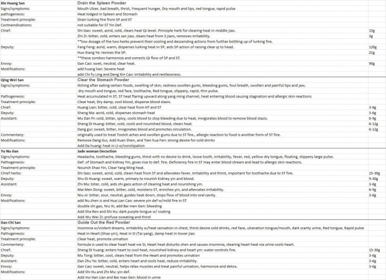 References/recommended reading: Chinese Herbal Medicine: Formulas and Strategies. Sneid, Bensky, Ellis, and Barolet.