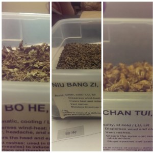 Niu Bang Zi- Arctii Fructus clears throat also skin rashes, moves Large Intest. Qi.