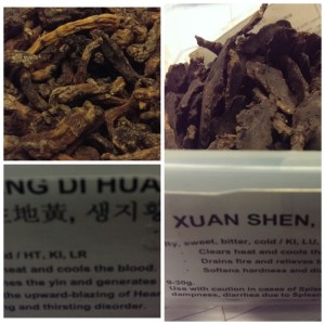 Sheng Di Huang- “Rehmanniae Radix” clears heat, cools blood, nourishes yin, engenders fluids, cool blood by generating fluids.