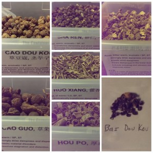 The herbs will warm, acrid, and aromatic, and drying qualities. Warming will relieve the dampess, acrid will start to move qi and fluids in the spleen and stomach, aromatic to revive the function of the spleen and stomach.