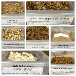 These herbs are cooling in nature to address phlegm heat, phlegm dryness. They are expectorants, sedatives, anti-inflammatory, and Lung stimulants.