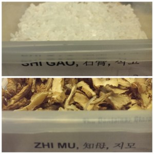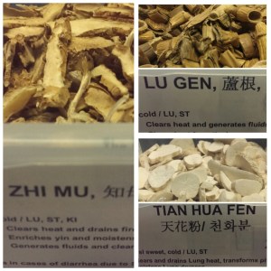 Zhi Mu- Anemarrhenae Rhizoma Clear heat, Enrich Yin,moisten dryness, generate fluid.