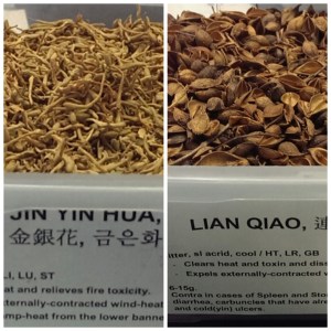 These herbs treat several issues including unresolved wind-cold and wind-heat that give the patient signs of “Fire”. epidemic toxins like bacteria and virus that affect general population, heat resulting form lifestyle such as diet, alcohol, emotional constraint, and internal heat. The herbs drain the fire and qi level heat.