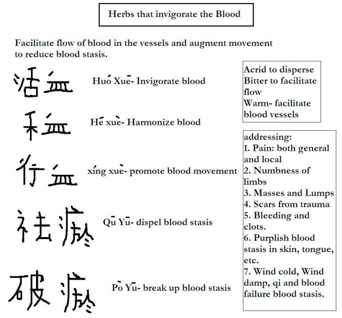 Ze Lan Herbs that Invigorate the Blood warm Acridbitter Liv, SP Gently invigorates blood w/o injuring normal qi, promotes urination. 9-15g pregnancy, blood def.