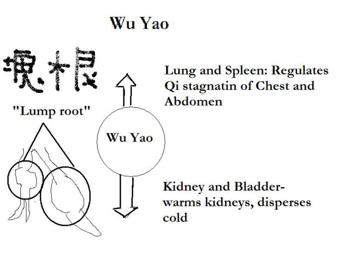 Wu Yao Herbs that Regulate qi Warm Acrid BL, KD, LU, SP Promotes smooth flow of qi, disperses cold, alleviates pain 3-9g Qi and Blood def., Internal heat
