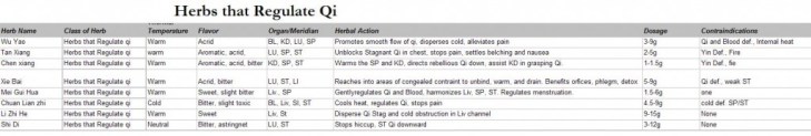 These herbs tend to be aromatic, warm, acrid, or bitter. They help promote the movement of qi, dispersment, drainage, and smooth flow.