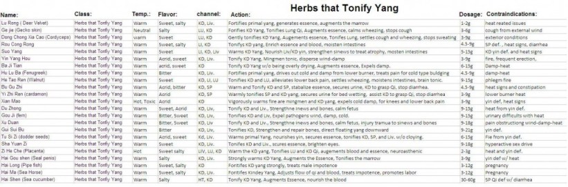 Name| Class of Herb|Thermal Temp.| Flavor| Organ/Meridian | Herbal Action | Dosage |Contraindications