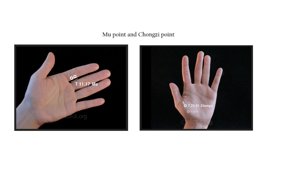 Acupoints: Mu and Chongzhi. These two points help the lung. They can be massaged to assist in common cold, seasonal allergies, and sinus congestion.