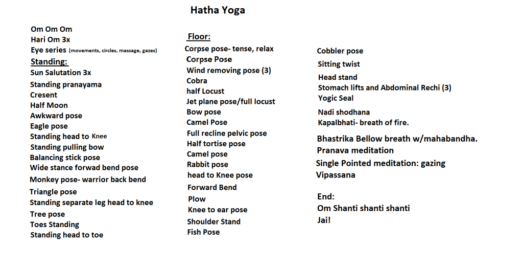 Swami Satchidanada, a teacher of Hatha Yoga, had a Yogaville retreat center in Charlottesville Virginia with several instructors in Richmond Virginia. I used to work at his Integral Yoga health food store in Cary Town. I took Hatha yoga classes with certified instructor Ed Clapp who was also a co-worker at Grace Place Vegetarian health food restaurant and store on Grace street. There is some brief techniques in the sets of Hatha yoga.